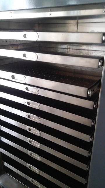 臺裕抽屜烘箱是專為產品頻繁進出烘箱所研發,多開門設計有效減少熱量損失,達到節約能源的效果,工作室尺寸,材質,層數可定制